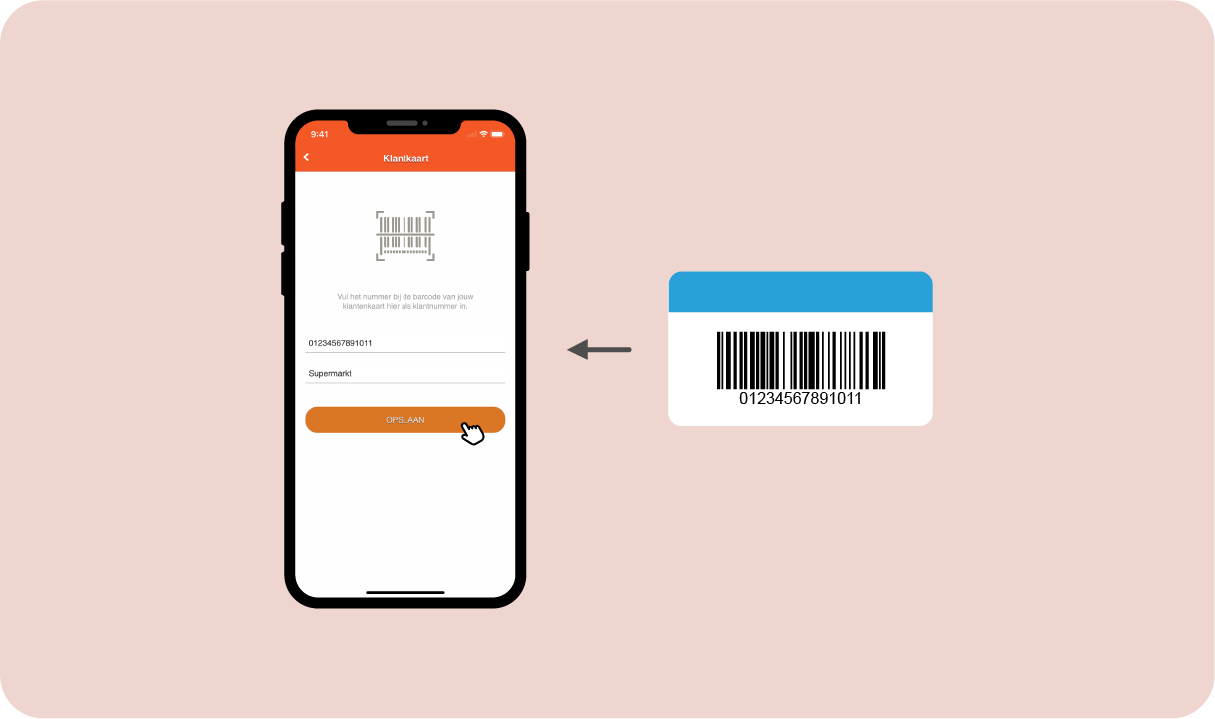 Vervolgens krijg je een formulier te zien waar je de naam en cijfers van de barcode bij jouw fysieke klantenkaart kaart moet invullen.
